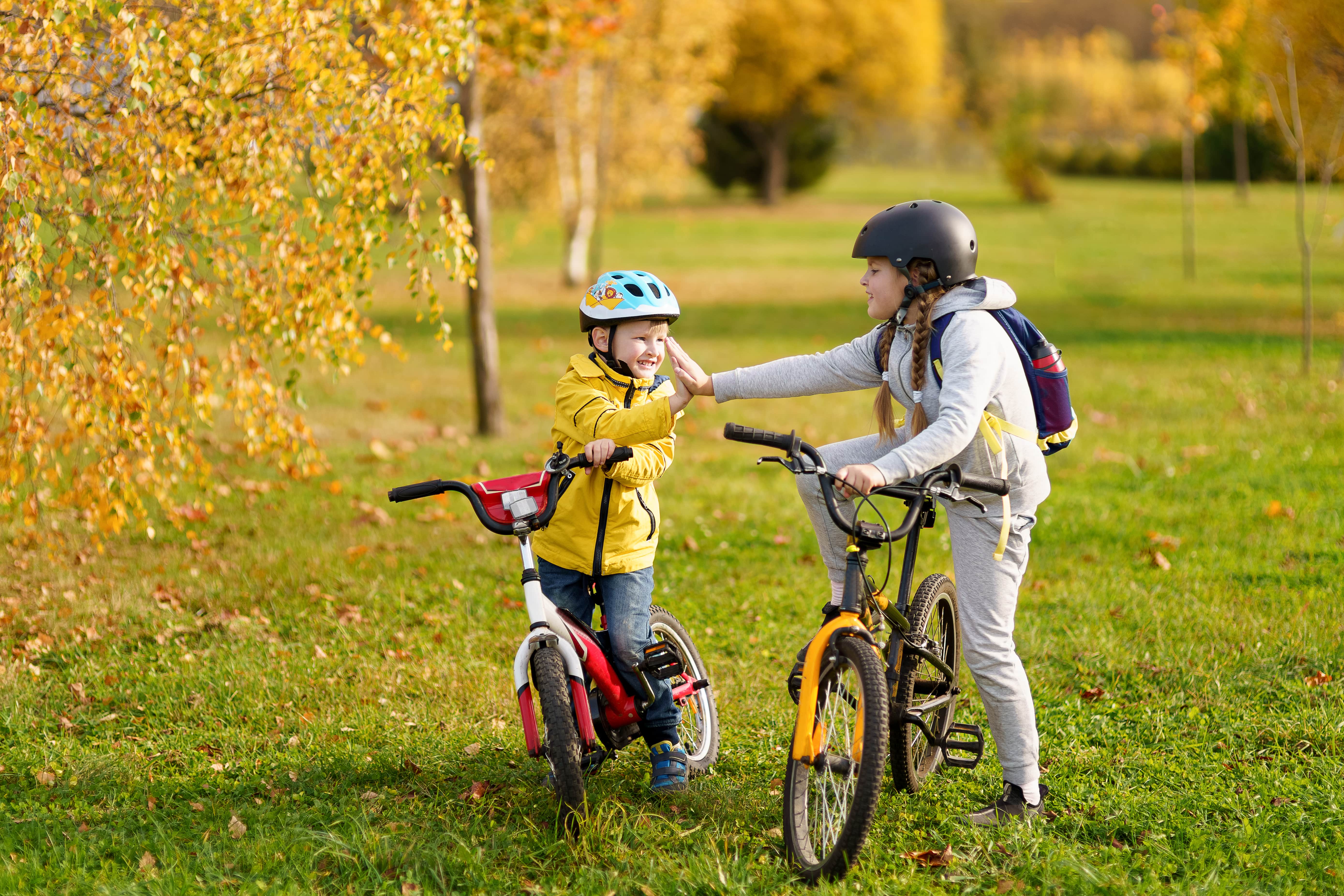 Vyrazit na kola s dětmi není jen tak. Když pomineme dobu, kdy jsou ještě malé a vezete je na sedačce za sebou, a zaměříme se na ty, které už dokáží něco ušlápnout, nevyhnete se povinné výbavě, která by vám neměla na kolech s dětmi chybět. A co do ní patří? V první řadě dětská helma na kolo, která by měla zabránit zranění hlavy v případě pádu. Pokud vaše ratolest nemá pud sebezáchovy, nejsou od věci ani chrániče na kolena a lokty. Dále také cyklistické rukavice. Ne kvůli tomu, aby dítěti ladily s tričkem, ale proto, že účinně odvádí pot a ruce na řídítkách pak nekloužou, což zase může zabránit další nehodě. Vhodné je také obléct vašeho potomka do výrazných barev, aby ho nepozorný řidič nepřehlédl.